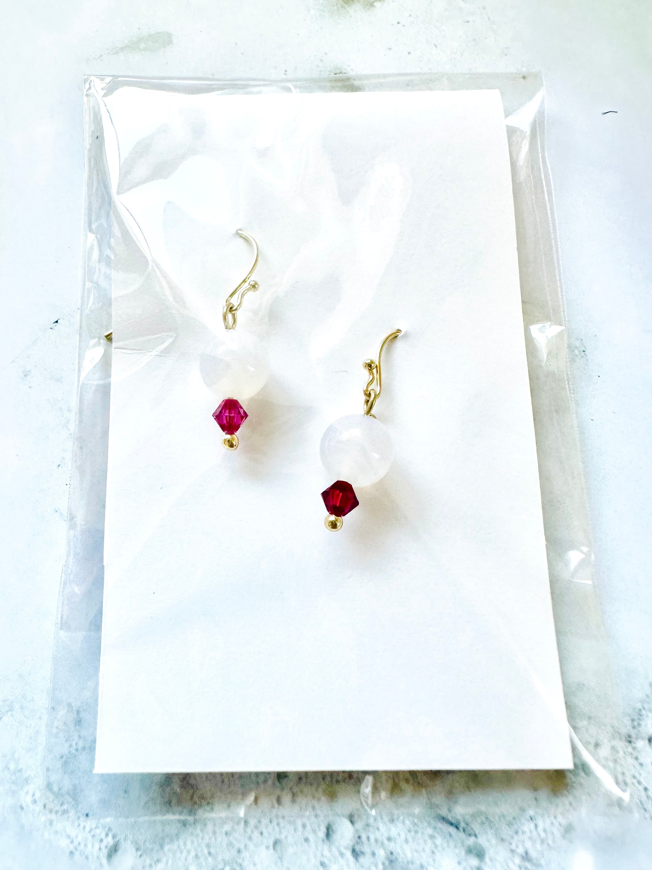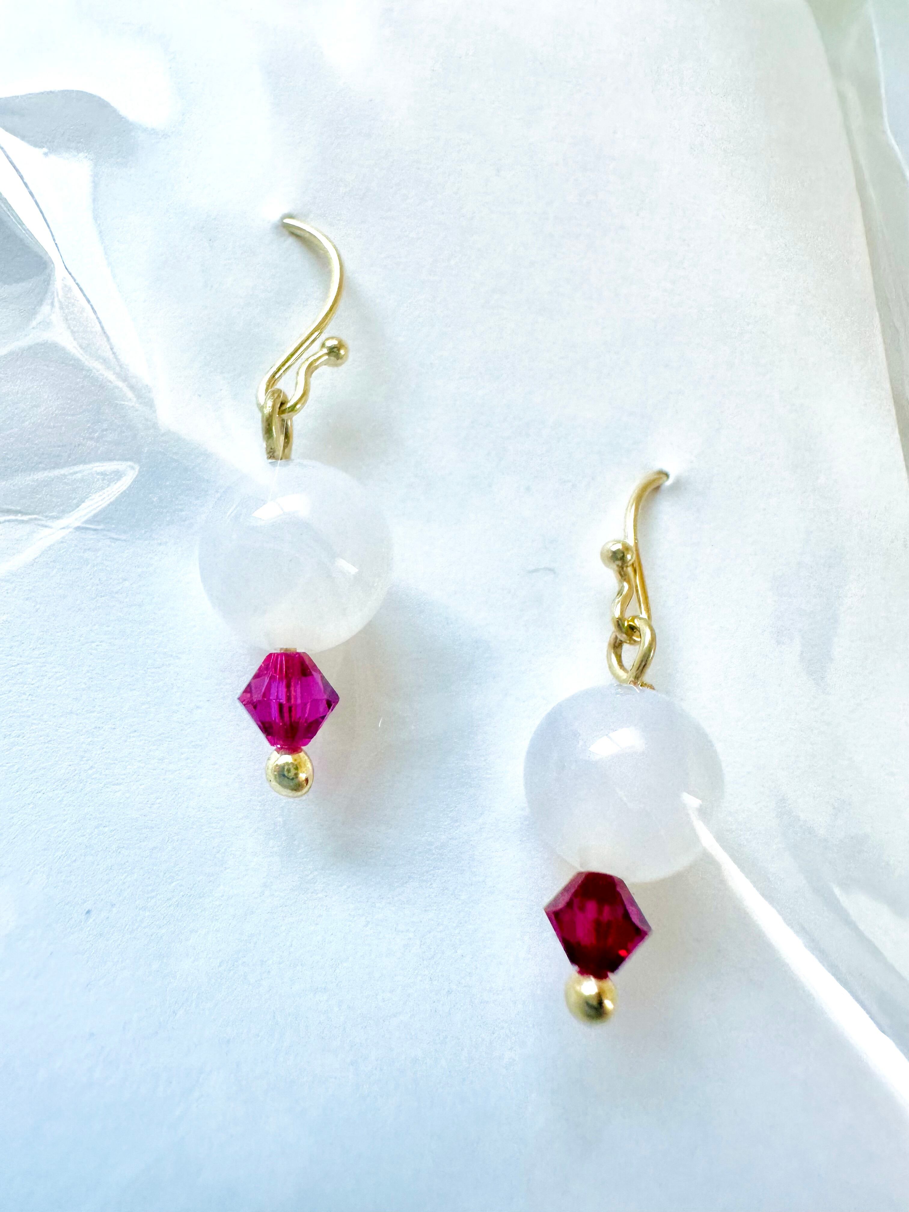 【純真なる光の雫】スロベニア最新チェンバー・アクティベーション済✨ホワイトメノウ&クリスタル・ピアス|魂の浄化と安らぎ